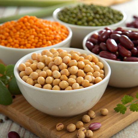 - Бобовые: чечевица, нут, фасоль содержат от 7 до 9 г белка на 100 г.