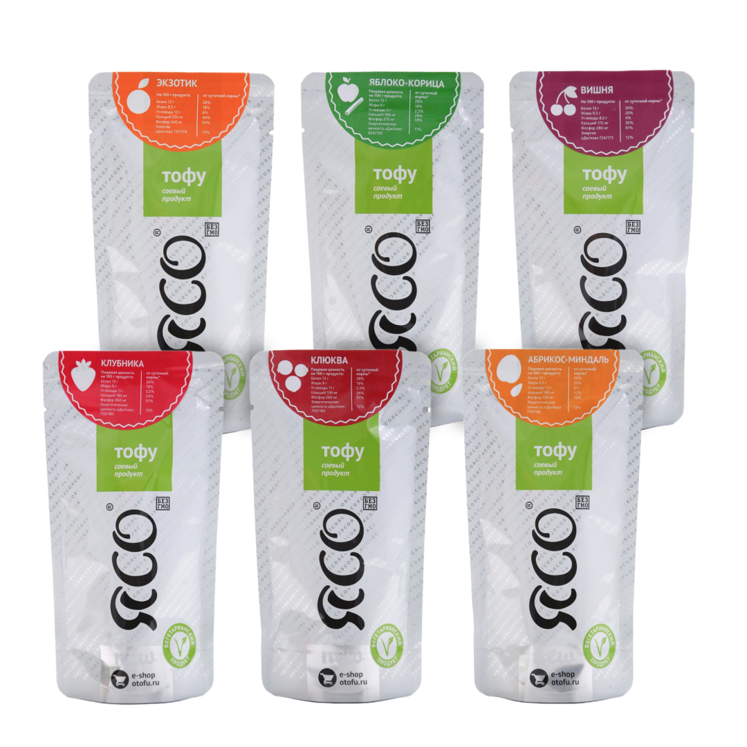 Ассорти вкусов, Абрикос-миндаль, Вишня, Клубника, Клюква, Экзотик, Яблоко-корица